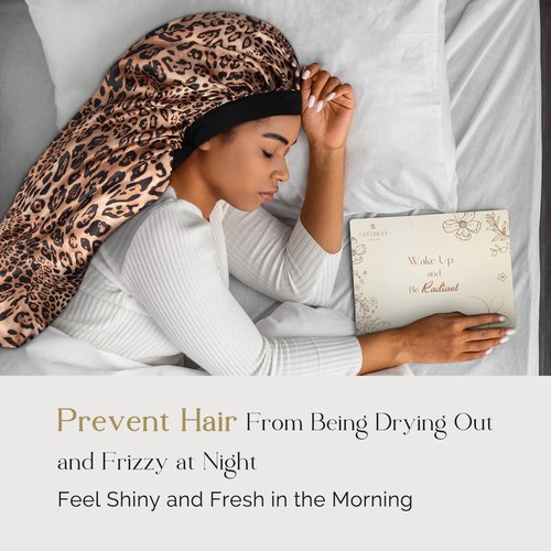 2 Pcs Hair Bonnets for Women Satin, Black Leopard Soft Elastic Band Long Satin Bonnet Sleeping Cap for Women Bonnet for Braids