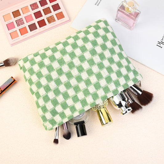 SOIDRAM 2 Pcs Checkered Makeup Bag Large Cosmetic Bag Toiletry Bag Makeup Pouch Travel Bag Organizer Cute Makeup Brushes Aesthetic Accessories Storage Bag for Women Green