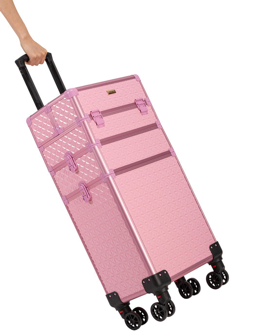 JINGUAN 3 in 1 Rolling Makeup Train Case, Multi-functional Cosmetic Trolley with 360° Swivel Wheels Keys, Large Storage Traveling Cart Trunk for Nail Technicians Hairstylist, Pink