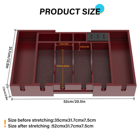 Invech Wooden Barber Clipper Tray with 6 Notches, Anti-slip Barber Station Organizer, Push-pull Hair Clipper Holder and Shaver Storage Box