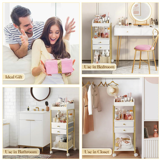 Makeup Organizer, Floor Skincare Organizers Make Up Organizers and Storage with Drawers, Vanity Organizer Cosmetics Display Cases Holder for Skin Care Nail Polish Perfume Gold