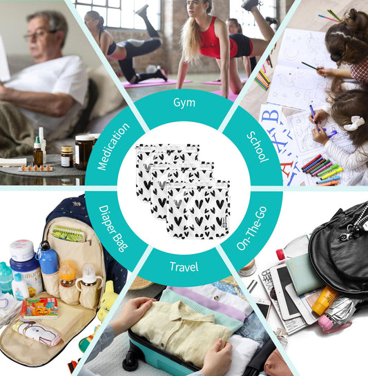 HIONXMGA TSA Approved Toiletry Bag, Set of 3 Clear Travel Toiletry Bag Quart Size Zipper Travel Pouch, Waterproof Makeup Cosmetic Bag for Women Men Kids Toiletries Carry on, Hearts Large