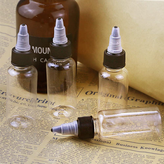ISUSSER Pack of 40 PCS Clear Refillable Empty Plastic Squeeze Bottle with Black Twist Top Caps, 1oz/30ml