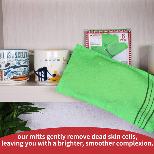 etreetowel Extra Large Size 9.9" x 5.5" (6 PCs) Korean Asian Exfoliating Bath Washcloths Mitt Scrub for Body washcloth Glove Viscose Rayon Towel for Soft Skin Korea Made