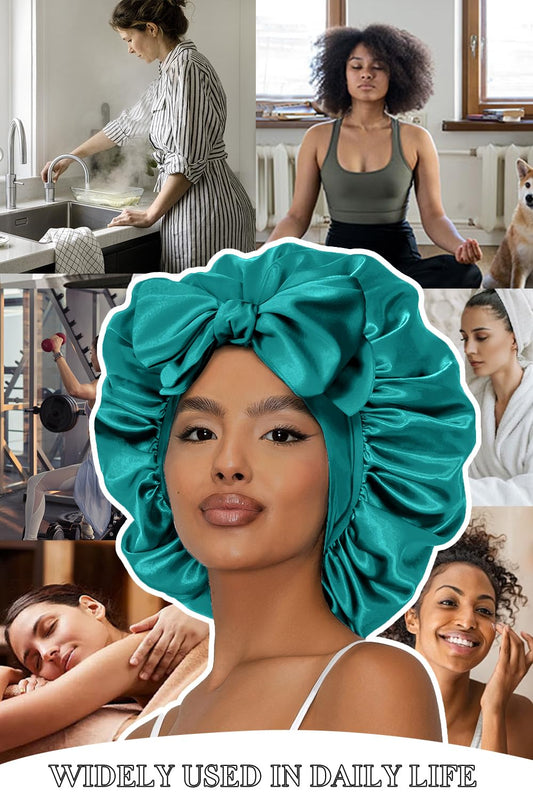 Vettres Hair Bonnet for Sleeping Satin Bonnet Silk Sleep Bonnets Double Layer Satin Bonnet with Tie Peach Red