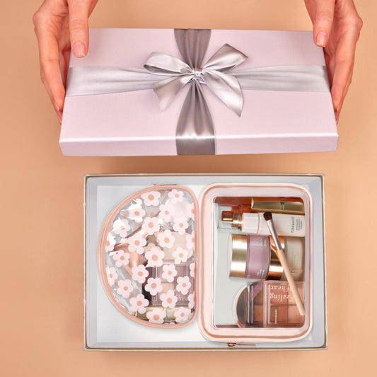 PACKISM TSA Approved Toiletry Bag - Rose Pink Flower Print Clear Shell Bag and Upgrade Color-Edged Quart Size Bag, Perfect for On the Go or Travel, Lightweight and Robust, 2 Pack