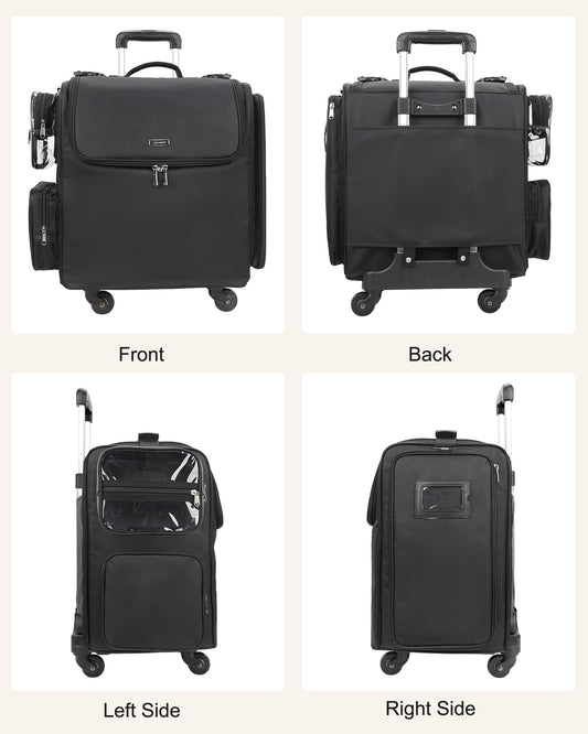 Relavel Rolling Makeup Train Case with 6 Pcs Clear Makeup Bags, Hairstylist Traveling Bag with 4 Wheels, Heat Insulation Full Layer, Adjustable Dividers, Hair Tools and Cosmetics Storage Organizer