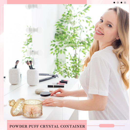 Tioncy 3 Pcs Large Body Powder Puff and Container Powder Container with Puff Crystal Case Soft Washable Reusable Velour Face Body Glitter Wet Dry Makeup(Crown,Amber)