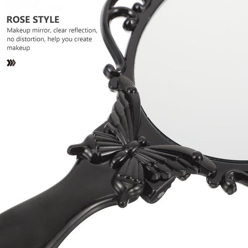 Angoily Retro Vanity Mirror Hand Mirror for Makeup Packet Mirrors Black Circle Mirror Portable Handheld Mirror Antique Mirror Folding Makeup Mirror Flowers Make up Plastic Travel, 23x12cm