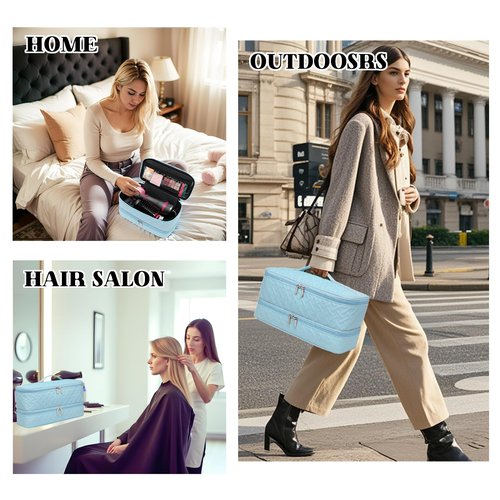 ARLMEGOR Double-Layer Travel Carrying Case for Hair Dryer/Shark Flexstyle/Dyson Airwrap and Hair Styler Attachmentst Portable Storage Organizer Bag Hair Tools Travel Bag (Blue)