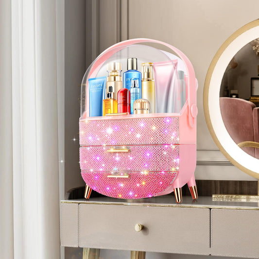 Ptesly Teen Girls Gift Makeup Organizer,Skincare Organizer Jewelry Storage,Cosmetics Storage and Display Case,Make Up Holders and Organizers for Countertop,Bathroom Organizer (PearlPink)