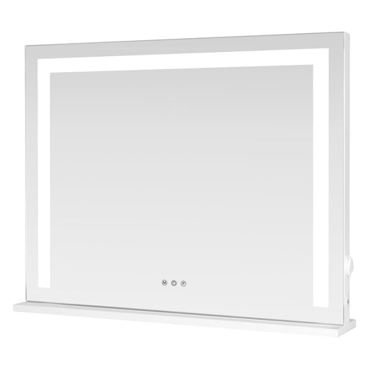 SHOWTIMEZ Vanity Mirror with Lights, Tabletop Wall-Mounted Makeup Mirror with Dimmable 3 Modes LED Backlit Light Strip,Touch Screen Control Cosmetic Mirror with USB Outlet, 22.8" W x 17.5" H