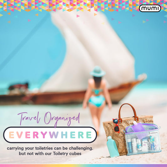 MUMI Travel Toiletry Bag Set of 3 – Water-Resistant Toiletry Bags for Women & Men – Clear Bags for Toiletries, Skincare, Makeup & Travel Essentials – Lightweight, Durable & Portable Organizer - Aqua