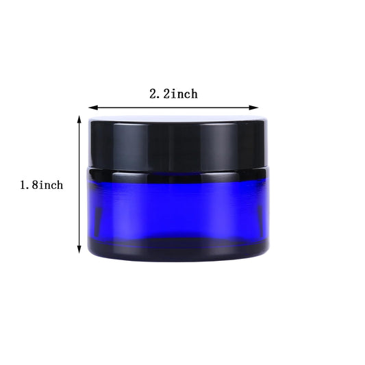OverNews 4PCS 2oz Glass Jar Travel Size, Empty Cosmetic Lotion Container with Black Lid & Spatula, Small Mini Jar for Beauty (Blue)