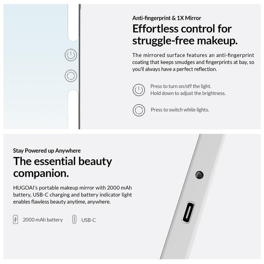HUGOAI Vanity Mirror with Lights - Travel Makeup Mirror, Portable Lighted Travel Mirror, 2000mAh Rechargeable 100 LED, Birthday Gifts for Women and Mom, 11.9", Black