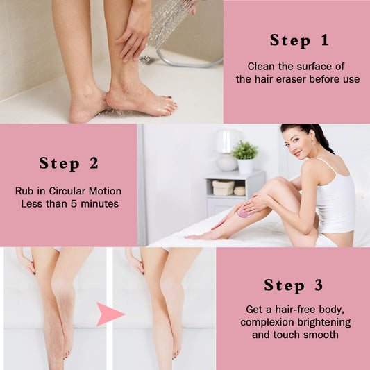 Crystal Hair Eraser for Women and Men, Reusable Crystal Hair Remover Magic Painless Exfoliation Hair Removal Tool, Magic Hair Eraser Device for Back Arms Legs (Pink)