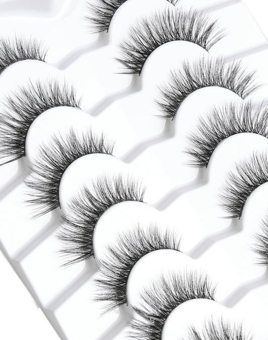 Onlyall Natural Lashes Wispy Lashes Natural Look False Eyelashes Natural Flared Eyelashes False Eye Lashes Soft Fluffy Lashes 7 Pairs D6 Volume-13mm