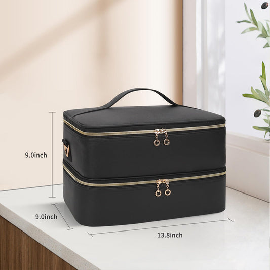 Ethereal Nail Polish Organizer Case, Leather Nail Polish Bag Holds 50+ Bottles (5ml/0.5fl.oz) and Nail Lamp, Nail Storage Organizer with Compartment, Leather Black