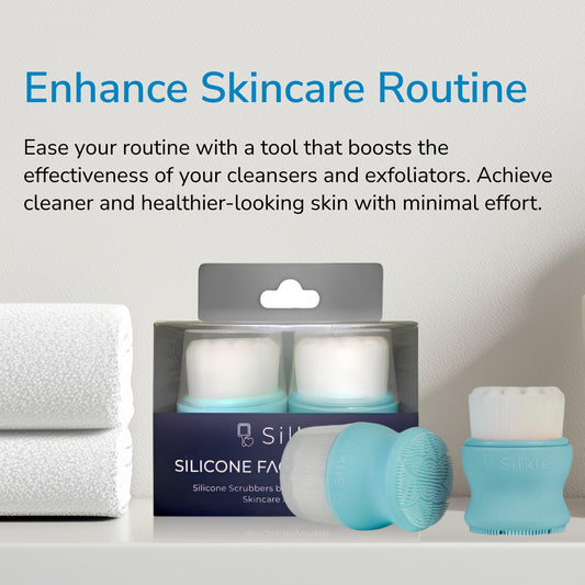 SILKLE Silicone Face Scrubber - Versatile Skincare Essential for Gentle Facial Cleansing, Exfoliation and Scrub - Exfoliating Face Wash and Cleanser Brush for Your Skin - 2 Pack - Blue