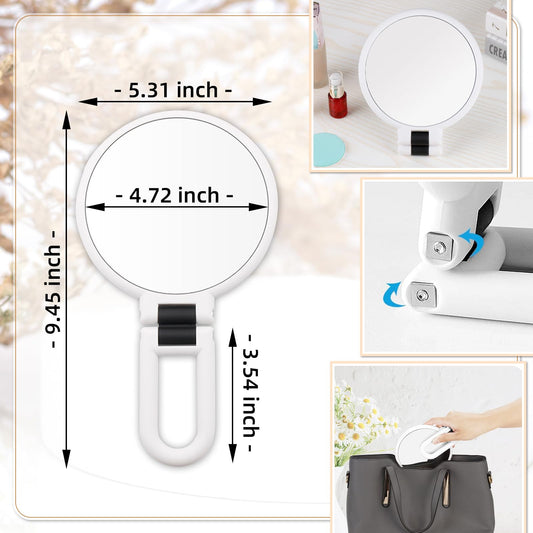 Novadex 1x 5X Magnifying Mirror, Handheld Hand Mirror with Handle, Travel Hand Held Vanity Mirror, Compact Double Sided Portable Magnification Small Make Up Mirrors for Precision Makeup (White)