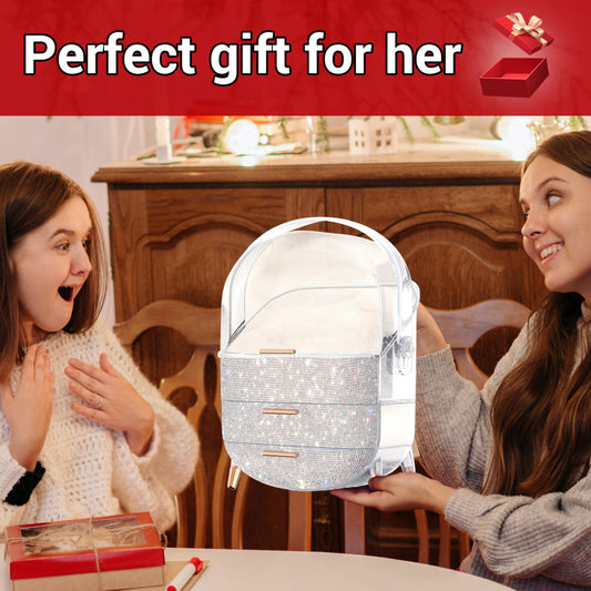 MASSY Egg Shape(Oval) Makeup Storage Box, Countertop Portable Vanity Cosmetics Organizer Preppy Style