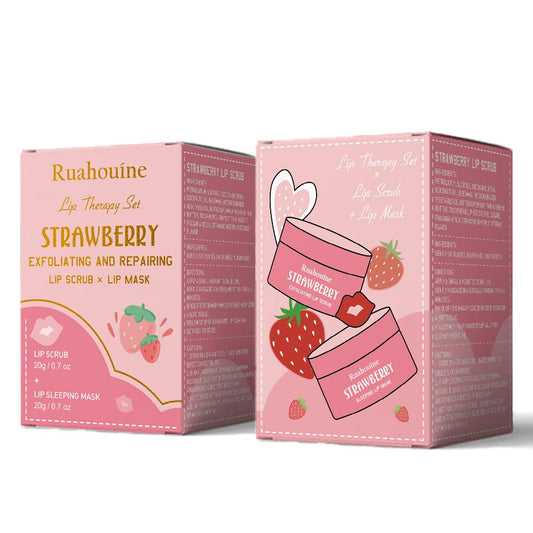 Strawberry Lip Scrub And Mask Set, Lip Scrub Kit, Lip Scrub Set, Sugar Lip Scrub Exfoliator, Lip Scrub For Dark Lips To Lighten, Lip Care Kit, Sleeping Lip Mask, Lip Mask Pack, 1.4 oz / 2-piece
