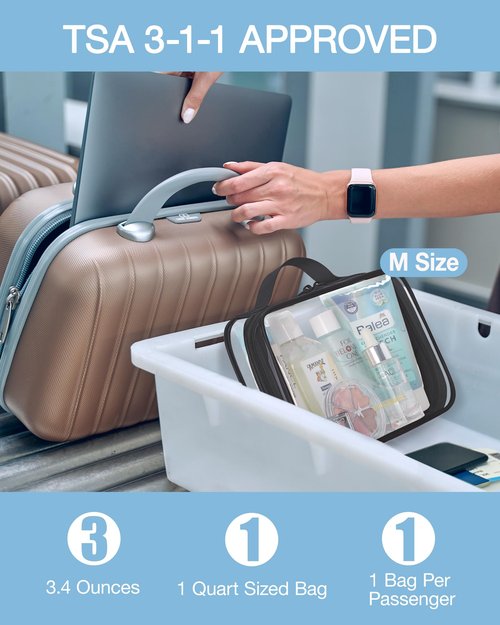 HIONXMGA TSA Approved Toiletry Bag, Set of 3 Clear Travel Toiletry Bag Quart Size Zipper Travel Pouch, Waterproof Makeup Cosmetic Bag for Women Men Kids Toiletries Carry on, Plus