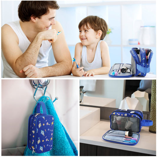 Vipdeal Kids Toiletry Bag for Boys, Travel Toiletry Bag for Little Young Boys Waterproof Hanging Wash Bag Toddler Traveling Toiletries, Space Blue