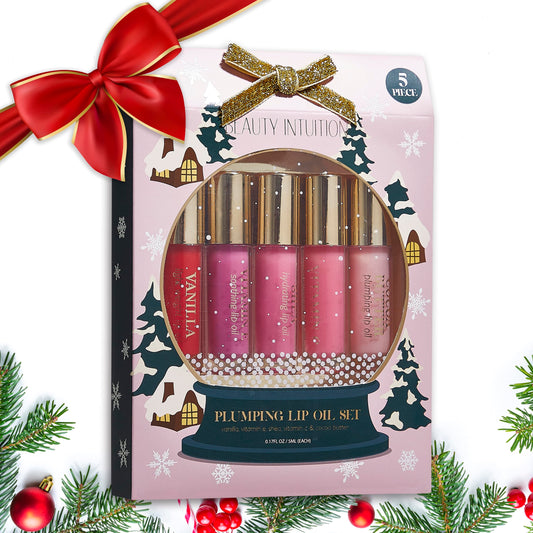 Enchante Beauty Intuition 5-Piece Plumping Lip Oil Set - 5ML Each | Lightweight, Hydrating and Soothing with Elegant Embossing