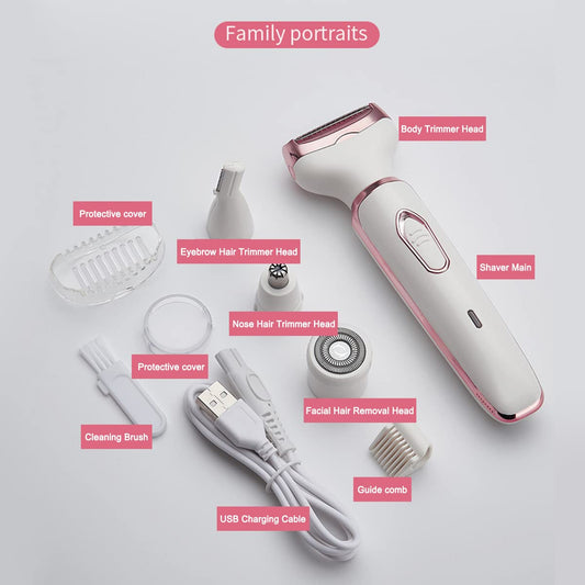 Bikini Trimmer for Women, Electric Razor Hair Shaver for Face Nose Eyebrow Beard Mustache Arm Leg Armpit Bikini, Replaceable Lady Facial Razor, Painless Rechargeable 4 in 1 Women Body Shaver for Trip