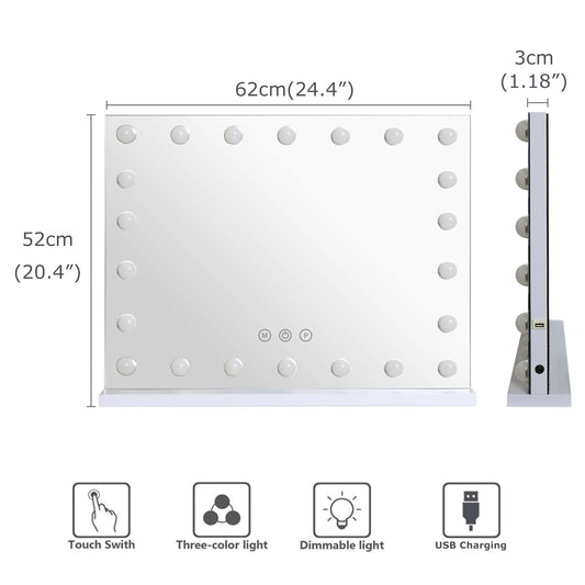 Despful 24.4"x 20.4" Vanity Mirror Makeup Mirror with Lights,10X Large Hollywood Lighted Vanity Mirror with 22 Dimmable LED Bulbs,3 Color Modes,Touch Control for Bedroom,Tabletop or Wall-Mounted