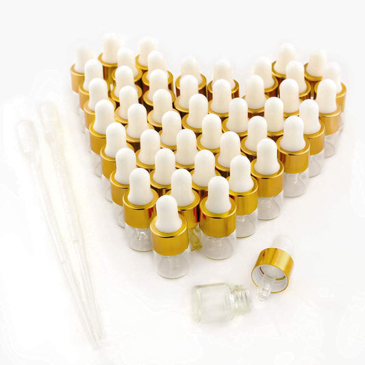 Easeen 50 Pcs Mini Dropper Bottles, 1ml Clear with 2 Pcs Plastic Droppers for Traveling Essential Oils DIY Cosmetic Liquid Sample Perfume
