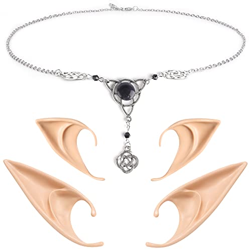 FRESHME Fairy Elf Ears with Celtic Headpiece Kit - Elf Ears and Celtic Knot Head Chain Boho Crystal Bead Head Pendant Headband Women s Halloween Renaissance LARP Cosplay Costume