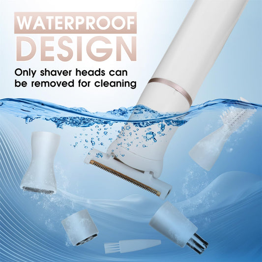 Founouly 5 in 1 Electric Women Bikini Trimmer, Waterproof Wet and Dry Uses Replaceable Ceramic Blade Heads USB Rechargeable Body Safety Clipper,White