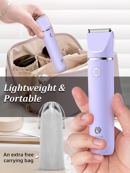 Cayzor Bikini Trimmer and Shaver Kit for Women - 2-in-1 Wet/Dry Electric Body Hair Trimmer Facial Hair Removal Cordless Waterproof Bikini Shaver Razor for Face Lip Chin Pubic Underarm Legs (Purple)
