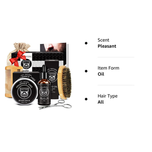 MALE GOD Gifts for Men, Beard Kit with Beard Oil, Balm, Comb, Brush, Scissors, Beauty Gift Sets for Him, Birthday & Christmas, Stocking Stuffers for Adults Men, Boyfriend, Husband, Son, Friend, Dad