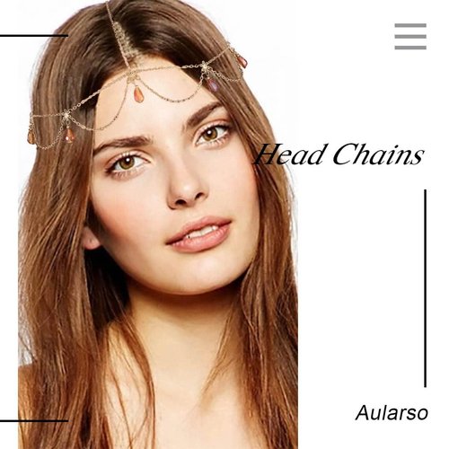 Aularso Boho Head Chain Crystal Forehead Chain Layerd Tassel Headpieces Dangle Hair Chain Vintage Headband Halloween Hair Accessories for Women and Girls (Gold)