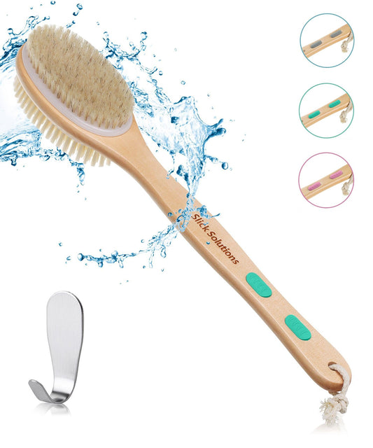 Slick- Shower Brush, Double Sided Shower Brush, Back Scrubber, Bath Brush, Back Brush, Back Brush Long Handle for Shower, Shower Brushes for Your Back, Bath Brush Long Handle for Shower