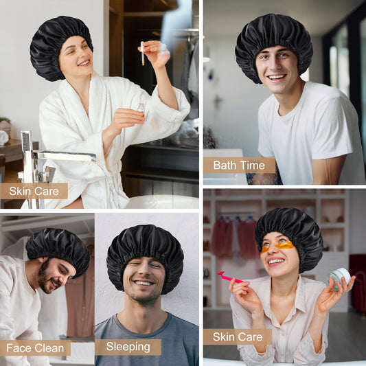 Silk Bonnet for Men Sleeping Satin Bonnet Hair Bonnets Double Layer Ajustable Bonnet Curly Braids Hair for Black Men and Women Sleep Cap (Black/Champagne)