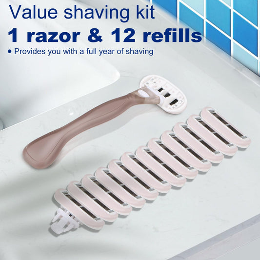 THURLADY Razors for Women, 5-Blade Womens Razors for Shaving, Razors for Women Sensitive Skin, Women Razors for Shaving Pubic Hair, 1 Razor with 12 Razor Blade Refills, Home Essentials, Coffee Brown