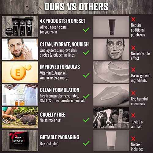Viking Revolution Men's Facial Skin Care Kit - Includes Rejuvenating Face Moisturizer, Microdermabrasion Facial Scrub, Foaming Cleanser (5oz Each) and Eye Cream (1oz)