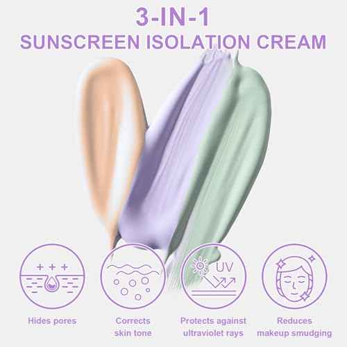 Primer for Face Before Makeup,One Step Color Corector Primer,SPF 50 PA+ 3 In 1 Sunscreen Isolation Cream,Color Correcting Facial Serum Oil Control & Moisturizing Skin Tone,Tinted Moisturizer with Spf