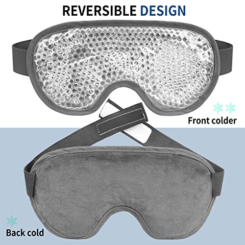Cooling Eye Mask with Gel Bead, Reusable Cold Compress Ice Pack Sleeping Eye Cooling Pads for After Eyelid Surgery, Puffiness, Puffy Eyes, Headache, Migraine Relief(Grey)