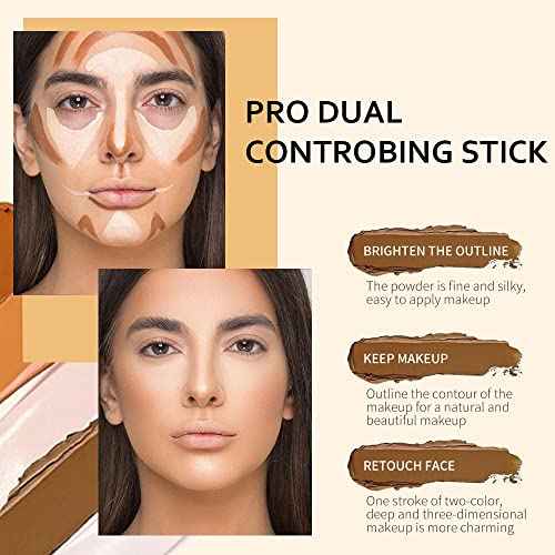 4 Colors Cream Contour Sticks Makeup Kit, Primer Face Highlighter Contouring for Beginners, Highlight and Contour Kit, Cream Concealer Makeup Blur Stick, Primer Face Corrector 1#,3#