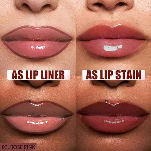 Lip Liner Stain Peel Off with Tweezer, Long Lasting Matte Lip Tattoo, Highly Pigmented Color Lip Tint Makeup, Waterproof, Transfer-proof Lipstain for Women, for All Skin Types Rose Pink