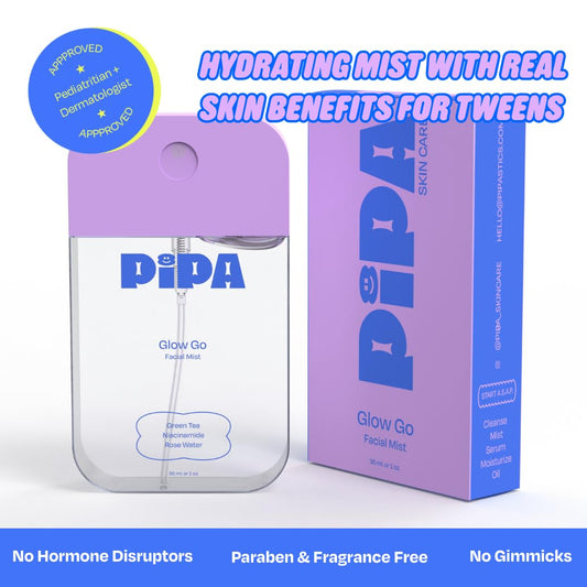 Pipa Clean Start Skincare Bundle for Kids & Tweens – Glow Go Mist, Smooth Operator Moisturizer, and Squeaky Clean Cleanser for Gentle, Hydrating, and Effective Daily Skincare
