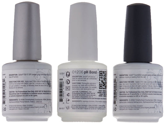 Gelish Terrific Trio Essentials 15 Milliliter Basic Care Soak Off Manicure Gel Nail Polish Kit with Foundation, pH Bond and Top It Off Gel