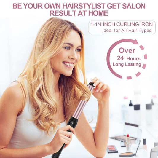 3 in 1 Curling Iron, Curling Wand Set with 3 Interchangable Ceramic Beach Waves Wands(0.75"-1.25"), Dual Voltage 30s Fast Heating with Heat Resistant Glove & 2 Clip for Long/Short All Hairstyle