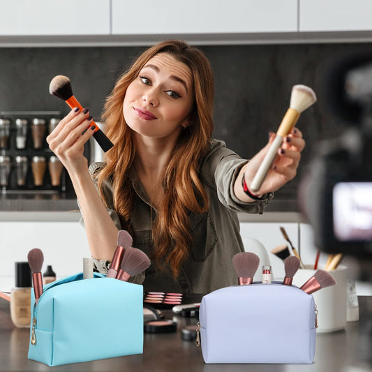 Sanwuta 9 Pcs Preppy Makeup Bag PU Leather Cosmetic Bag Makeup Pouch Plain Cosmetic Pouch Waterproof Toiletry Bags for Traveling Preppy Travel Purse Cosmetic Organizer(Pink, Blue, Purple)