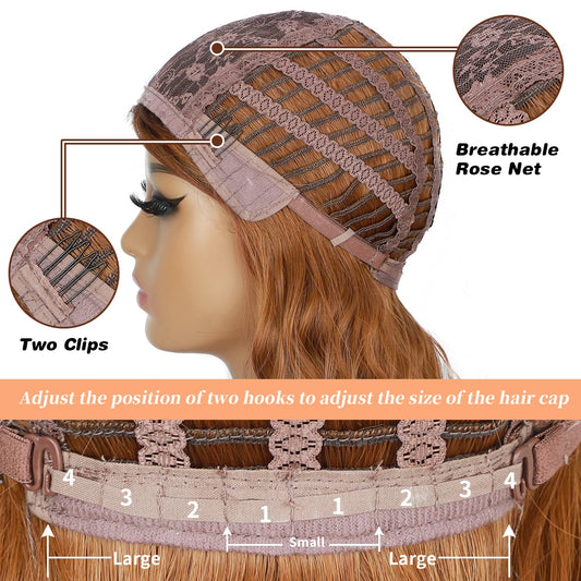 Lativ Auburn Wig with Bangs Short Bob Wigs for Women Shoulder Length Ginger Wavy Curly Wigs Synthetic Fiber Wigs 14 Inches for Daily Party Use
